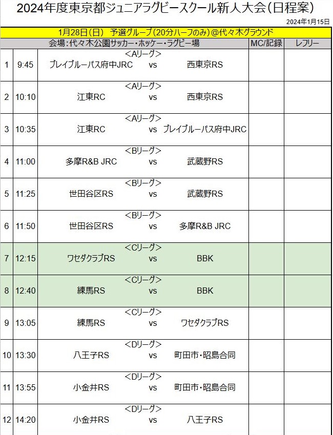 1/28(日) 東京都新人大会プール戦@代々木グラウンド