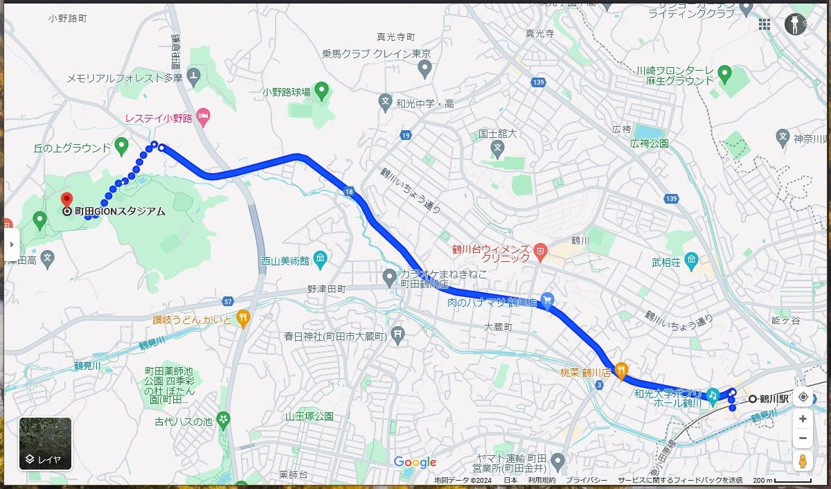 直接移動の場合、13:00までにスタイルして町田GIONスタジアム正門前