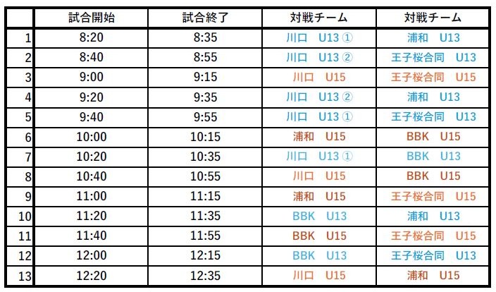 集合:8:20までにJR京浜東北線川口駅改札の外→西口から徒歩15分でグラウンド到着
