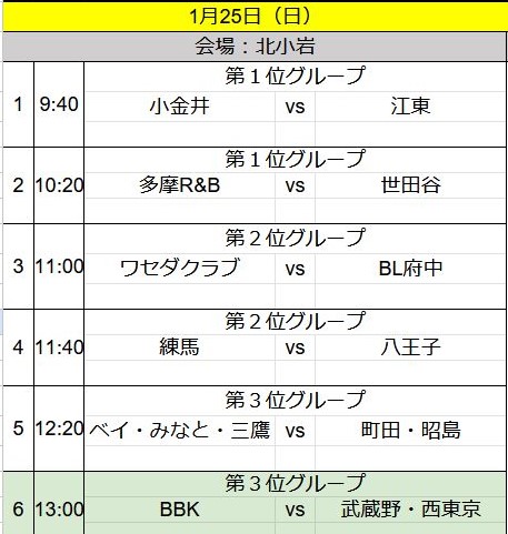 10:50~ 多摩R&B戦@臨海B