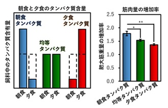 朝のタンパク質摂取量による筋量増加作用には、正しく同期した体内時計が必要です。